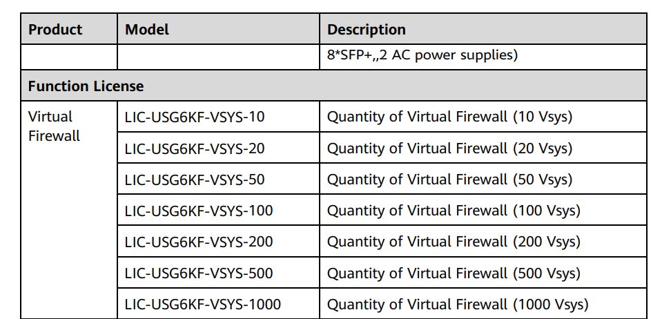 รายละเอียดของ Huawei Virtual Firewall Function LIC-USG6KF-VSYS |